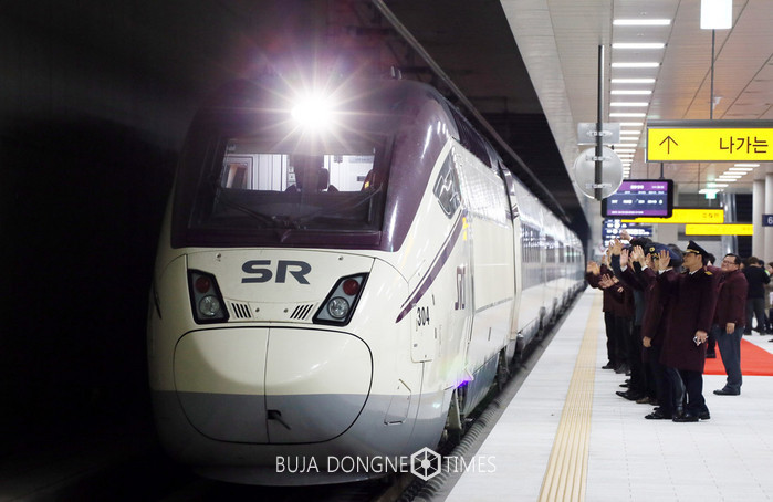 9일 오전 SRT 목포행 첫열차가 김복환 SR 대표를 비롯한 임직원들의 환송을 받으며 강남구 수서역을 출발하고 있다. 2016.12.09. (사진=SR 제공)