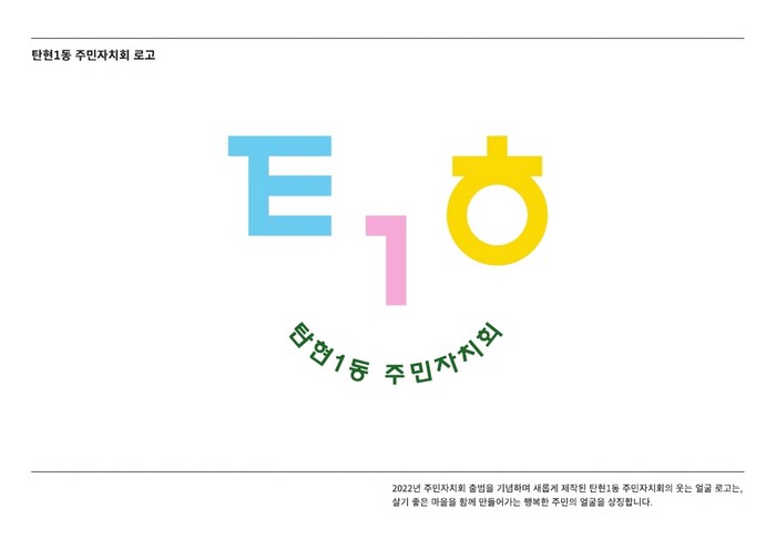결정된 로고(BI)의 디자인은 탄현1동의 ‘ㅌ’, ‘ㅎ’, ‘1’ 각각의 글자 및 숫자를 조합해 ‘눈’, ‘코’로, ‘탄현1동 주민자치회’를 입으로 형상화해 ‘웃는 얼굴’을 완성했다. 이번에 새롭게 제작된 탄현1동 주민자치회의 웃는 얼굴 로고는 ‘살기 좋은 마을을 함께 만들어가는 행복한 주민의 얼굴’을 상징하며, 주민자치회에서는 이번 브랜드 이미지 제작을 통해 앞으로도 주민 모두가 웃을 수 있는 행복한 마을, 탄현1동을 만들기 위해 노력하겠다는 다짐을 했다.
