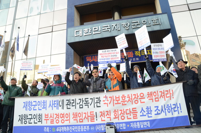 이날 보수단체 회원들은 조남풍 재향군인회장 구속 야기된 재향군인회 사태 책임자 처벌을 촉구하며 “국가분란 획책하는 향군노조 해체 하라”, “조남풍 회장은 구악의 희생양이다. 석방하라”,“향군비리의 원흉 전임 회장들 소환조사 하라”고 주장했다.