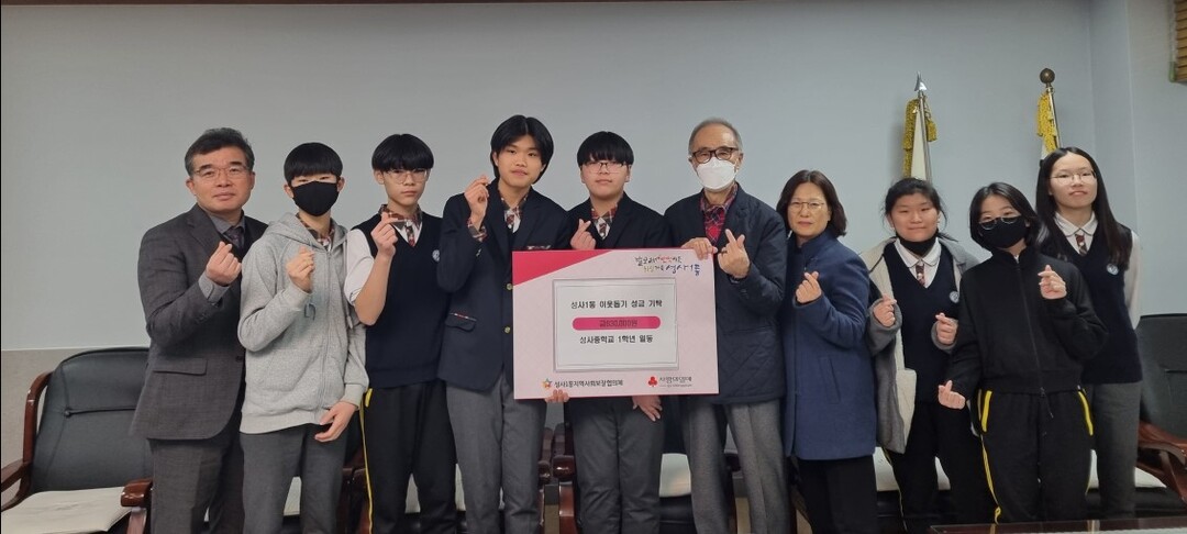 최숙 성사1동장은 “학생들의 밝고 따뜻한 마음이 지역사회에 선한 영향력을 펼칠 것으로 기대한다.”라며 “나눔을 실천해 준 학생들과 학교 관계자분들께 깊이 감사드린다.”라고 말했다.
