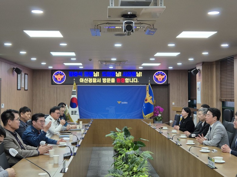 아산경찰서의 112치안종합상황실을 찾은 강훈식 의원은 112 신고 접수 시 대응 매뉴얼을 점검한 후, 김경열 경찰서장을 만났다. 김경열 경찰서장은 “안전 유지에 사각지대가 없도록 CCTV 등 관련 인프라 확충이 필요하다”고 요청했고, 강훈식 의원은 “국비 마련을 위해 최선을 다하겠다”고 답했다.