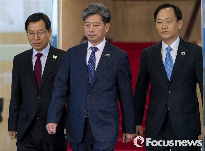 | △ 제1차 남북 당국회담의 결렬과 관련해 정부가 "북한이 후속회담에 호응해 올 것을 기대한다"고 말했다. 사진은 11일 오전 서울 종로구 남북회담본부에서 황부기(앞줄 가운데) 통일부 차관을 비롯한 대표단이 남북당국회담을 위해 출발하는 장면. <사진제공=포커스뉴스> |