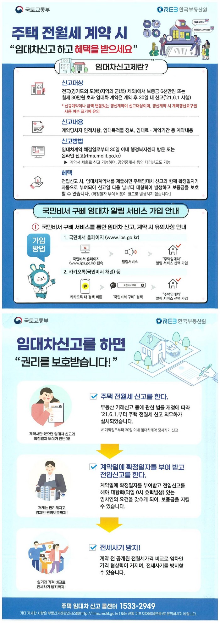 임대차 신고 관련 문의 사항은 임대차 물건지의 관할 동 행정복지센터 및 국토교통부 부동산거래관리시스템 주택임대차신고 콜센터 ☎1533-2949를 통해 할 수 있다.