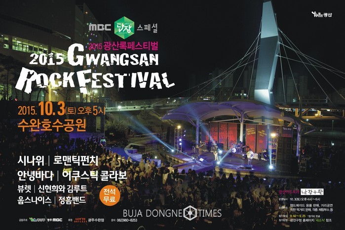 [광주=부자동네타임즈 손권일 기자] 광주광역시 광산구(구청장 민형배)와 광주MBC(대표이사 최영준)가 3일 오후 5시 수완호수공원 야외공연장서 '2015 광산록페스티벌'을 개최한다.