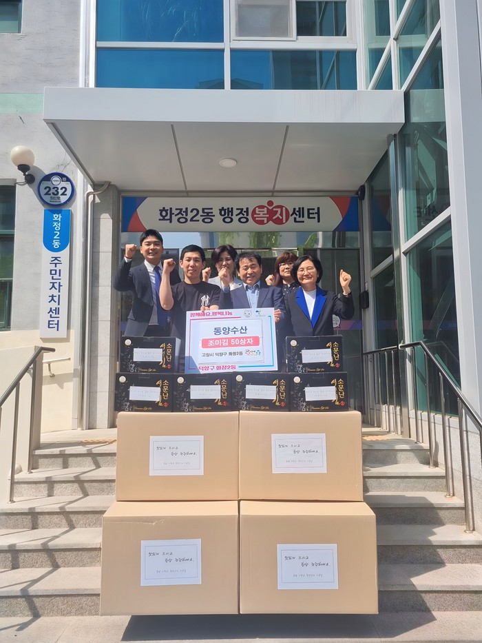 [부자동네타임즈 김인수기자] 고양특례시 화정2동 행정복지센터는 지난 9일, 동양수산(대표 지용일, 충남 서천군 소재)에서 기부한 후원물품의 전달식을 진행했다.