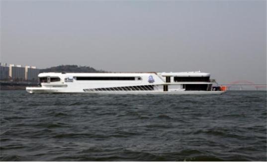 ‘아라호’는 길이 58m, 폭 12m의 688톤급 규모로 310명(공연관람 150석)이 탈 수 있으며 2층 구조에 가변식 무대 시설이 설치돼 있어 배 안에서 음악회 등의 공연과 웨딩, 런칭쇼, 영화상영도 가능하다.