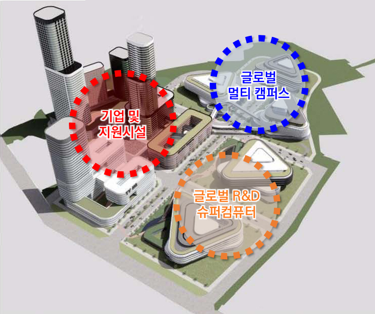 대규모 AI 집적단지를 조성하기 위해 카네기멜론대와 싱가폴국립대 등 해외 유수의 대학들과 포항공과대학교(인공지능연구원)를 비롯한 다수의 국내대학 및 기업들이 공동으로 참여할 예정이다.
