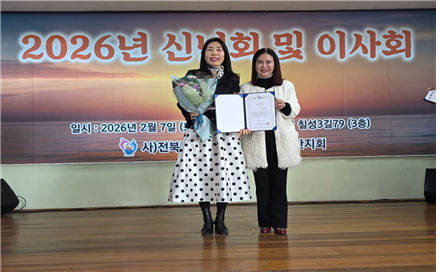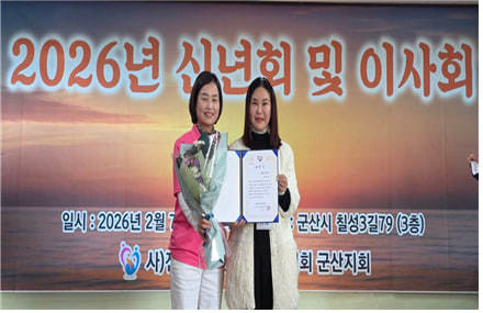 [전북=세계타임즈 = 이영임 기자] (사)세계여성평화그룹(IWPG) 글로벌12국 군산지부(지부장 황설희)는 지난 7일 오후 2시 전북특별자치도 군산시 산북동에서 열린 ‘전북장애인정보문화협회 군산지회 2026년 신년회 및 이사회’에서 감사패와 표창장(한윤정 경영지원부장)을 수상했다.