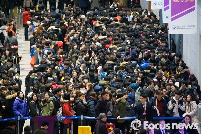 (서울=포커스뉴스) 3일 오전 서울 강남구 코엑스에서 열린 '2016학년도 정시 대학입학정보박람회' 행사장이 학생과 학부모 및 관계자들로 붐비고 있다.