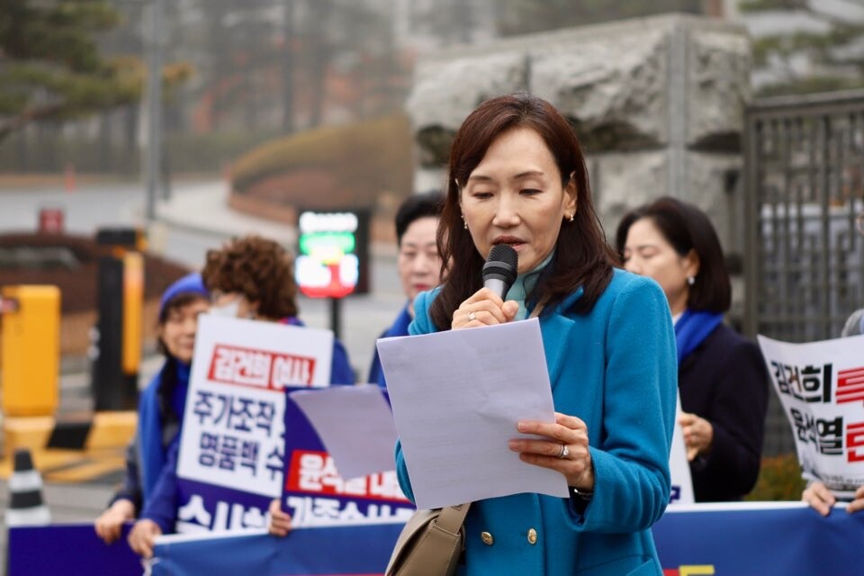 이어서, 김안숙 전 서초구 의장이 기자회견문을 낭독하고, 강남 병 박다미 지역위원장, 그리고 최은상 전 서초갑 지역위원장이 발언에 나섰다.