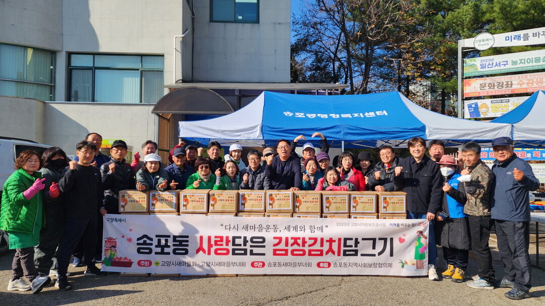 [부자동네타임즈 = 김인수 기자] 고양특례시 송포동 새마을부녀회(회장 이연희)와 지역사회보장협의체(민간위원장 김중기)는 지난 14일 송포동 행정복지센터에서 사랑의 김장김치 전달식을 공동으로 진행했다.