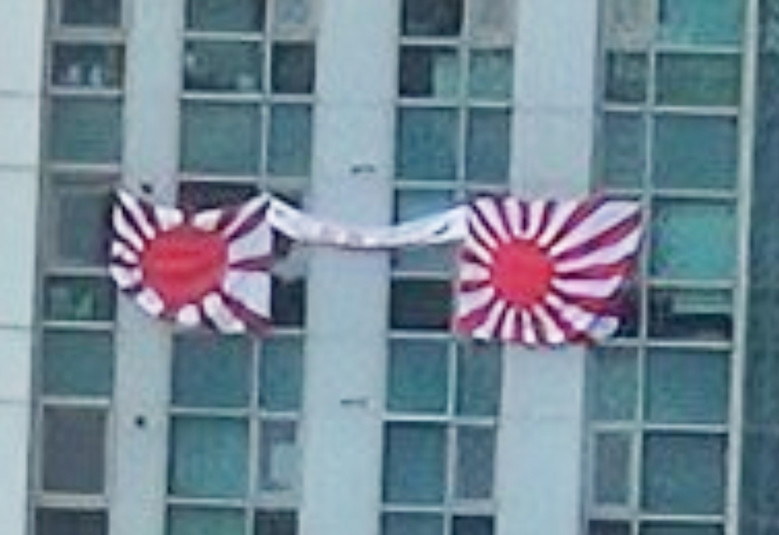 한편 욱일기는 과거 일본이 아시아 각국을 침략할 때 전면에 내세운 깃발로 일본의 군국주의와 제국주의를 상징한다.