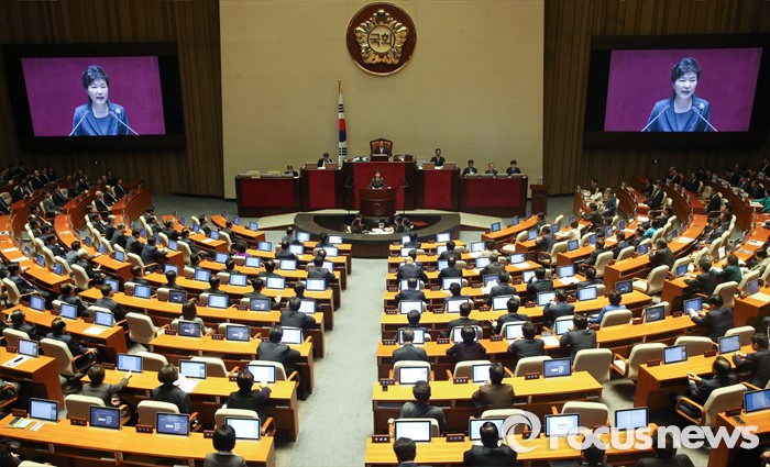 | △ 박근혜 대통령이 27일 오전 서울 여의도 국회 본회의장에서 2016년도 예산안 시정연설을 하고 있다. 사진공동취재단 photo@focus.kr |