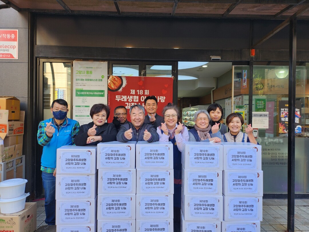 [부자동네타임즈 = 김인수 기자] 고양파주두레생협(이사장 우미란)과 함께 지난 17일(금) ‘사랑의 김장 나눔 행사’를 열고 취약계층 청소년 가정에 김치를 전달했다.