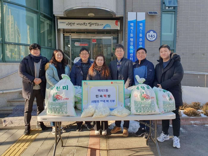 백석동에 소재한 민속 떡방은 평소 지역사회 나눔 활동에 관심을 가지고 백석1동 외에도 다른 단체에도 떡 관련 후원물품을 꾸준하게 기부해 왔다.