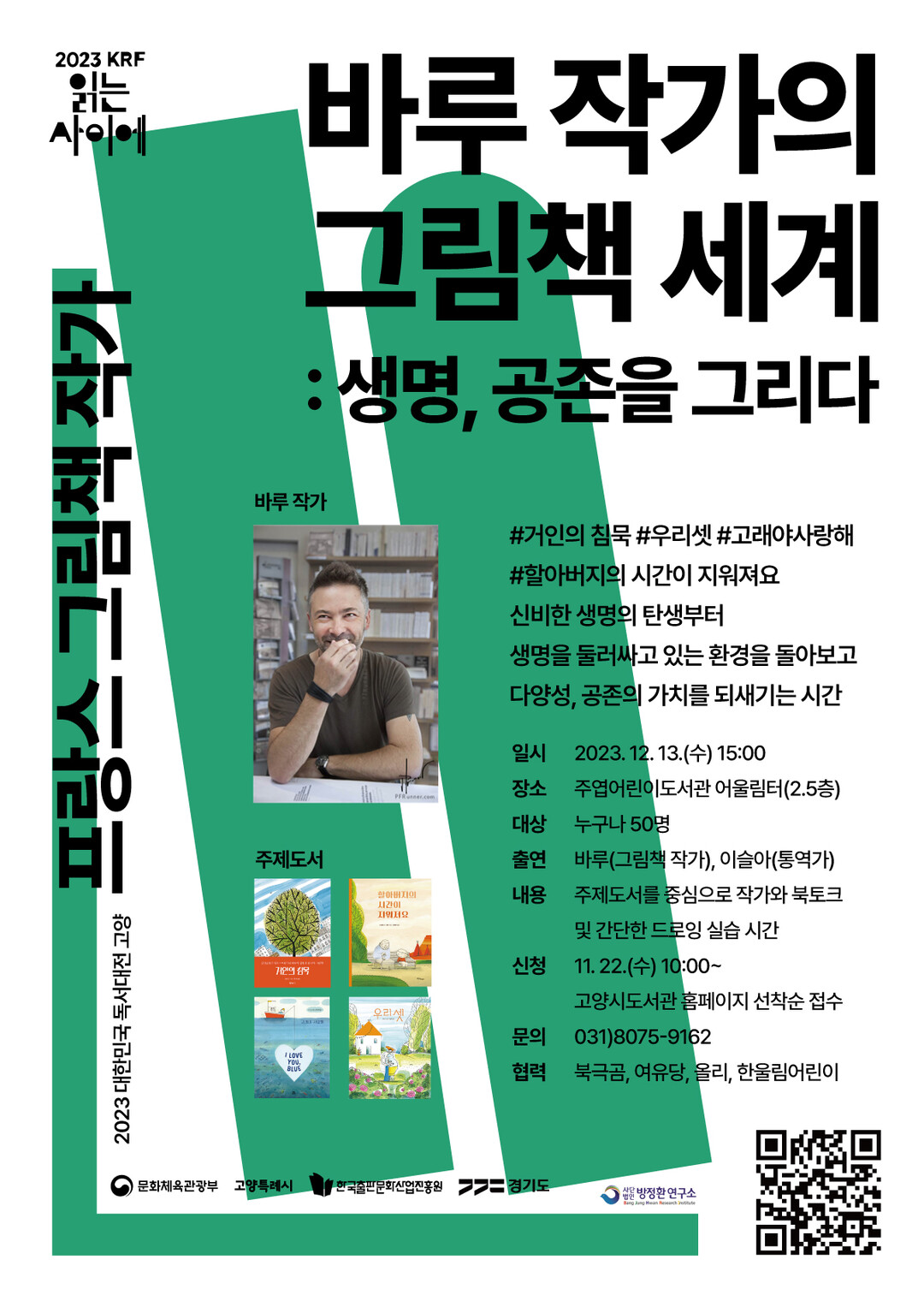 바루 작가는 주한 프랑스대사관과 4개 출판사의 초청을 받아 방정환연구소가 주관하는 ‘2023 방정환학술대회’에 초청되어 한국을 방문했다. 세계그림책 특성화도서관인 주엽어린이도서관은 작가의 국내 방문 시기에 맞춰 독자와의 만남을 적극 추진해 이번 행사를 성사시켰다.