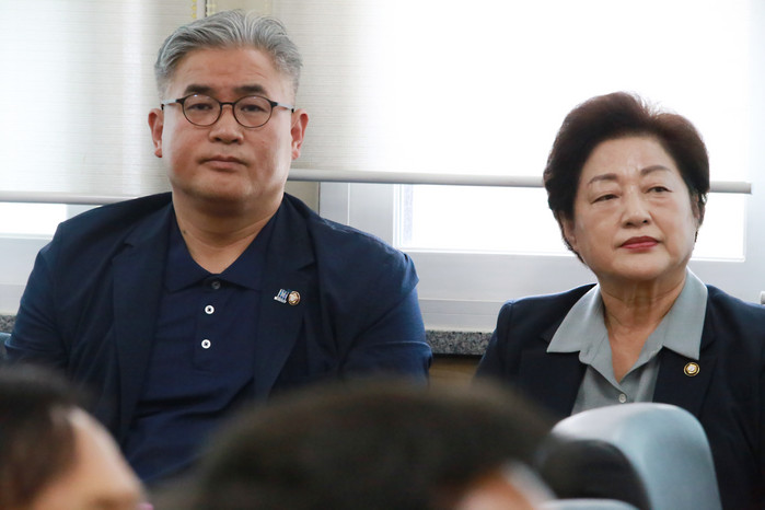[사진설명] "제9대 고양특례시의회 의장 취임 1주년 기자간담회" 참석한 좌측부터 더블어민주당 문재호 위원장, 더블어민주당 조현숙 부의장.