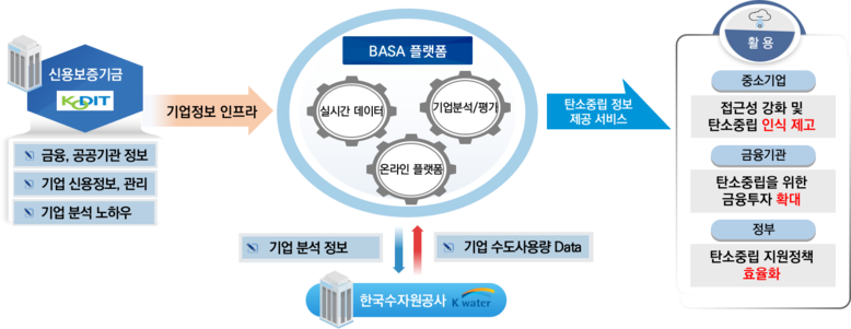 신용보증기금은 한국수자원공사의 상수도 이용 데이터를 AI 기반 기업 분석 및 경영진단 서비스와 연계하여, 기업의 생산활동과 에너지 사용량 간 상관관계 분석 등 중소기업 맞춤형 ESG 경영 분석이 가능할 것으로 보인다.