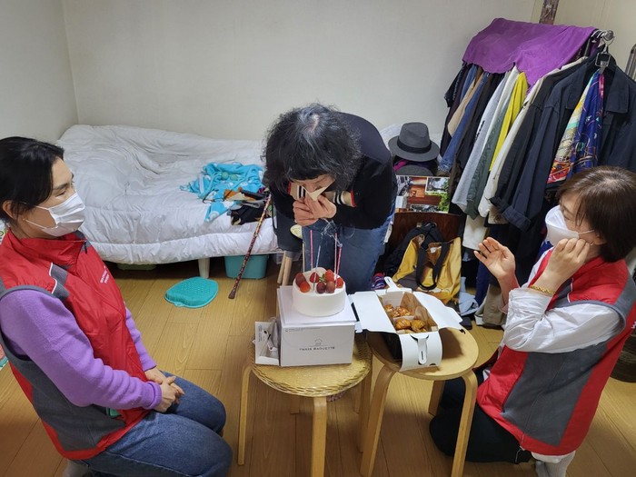 생신축하사업 ‘행복한 Day’는 2022년부터 대화동지역사회보장협의체 위원들이 관내 취약계층의 집을 방문하여 케이크를 전달하며 생신을 축하해드리는 사업이다.