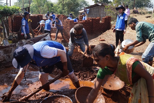 △ 삼성물산 임직원들이 인도 차르가온마을에서 '삼성물산 2호 마을'을 건설하는 해외봉사활동 펼치고 있 다. <사진제공=포커스뉴스> |