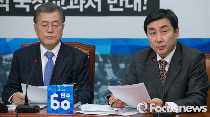| △ 이종걸 새정치민주연합 원내대표가 4일 오전 서울 여의도 국회에서 열린 최고위원회의에 참석해 발언하고 있다. 왼쪽은 문재인 대표. <사진제공=포커스뉴스> |
