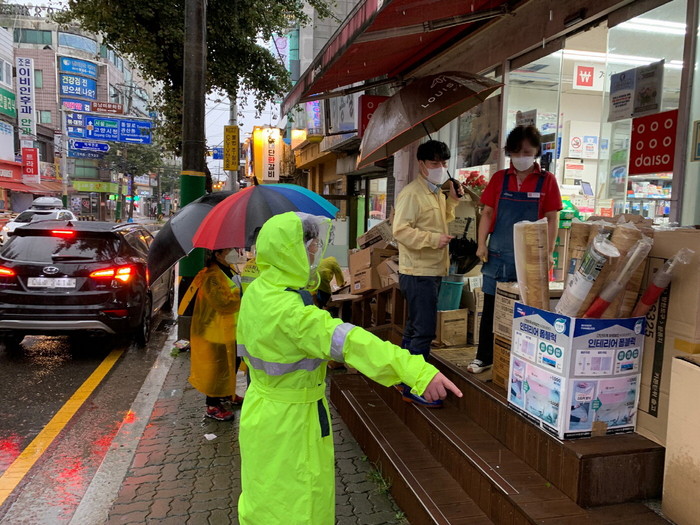 제11호 태풍 ‘힌남노’는 강한 비바람이 예상됨에 따라, 고양동 상가를 중심으로 빗물받이 배수 상태를 확인하고, 상가 주민과 함께 간판, 현수막 등 옥외 광고물 고정 상태를 확인하고 조치 및 신고요령을 안내했다. 상가 외부에 위치한 엑스배너, 파라솔 및 의자 등도 안전하게 이동 조치하였다.