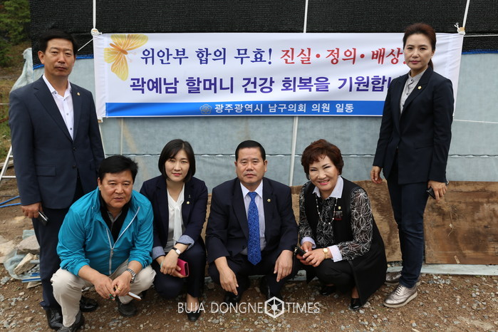 남구의회(의장 강원호)는 지난 7일 담양군 대덕면 거주 위안부 피해자인 곽예남 할머니를 찾아 위문품을 전달하고 위로하는 시간을 가졌다.