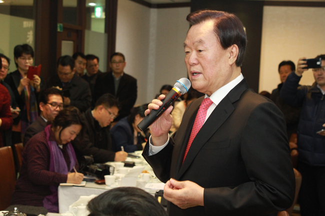 | △ 김경재 전 대통령비서실 홍보특보가 한국인터넷신문방송기자협회와 단독으로 오찬 기자간담회를 가졌다. |