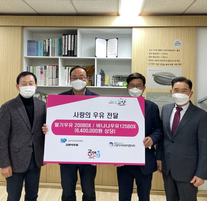 고양낙우회와 우유자조금관리위원회는 고양시농업기술센터를 방문해 멸균우유 325박스(8,800개)를 기부했다.