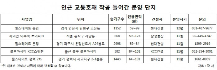 업계관계자는 "부동산 시장이 실수요자 중심으로 재편되면서 다양한 개발 계획보다는 실제 착공에 들어간 호재가 수요자들에게 더 영향을 미치고 있다"며 "완공 이후에도 부동산 시장에 상승을 미치고 있는 만큼 착공 이후 신규 교통망 인근 단지에 관심을 가져보는 것이 좋다"고 설명했다.
