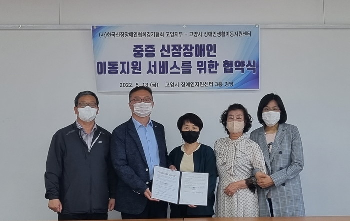 [부자동네타임즈 김인수기자] 고양시는 지난 13일 일산서구 소재 장애인지원센터에서 (사)한국신장장애인협회 경기협회 고양지부(회장 임은희)와 고양시 장애인생활이동지원센터(센터장 박찬식)가 중증 신장장애인 이동지원 서비스 업무 협약을 체결했다고 밝혔다.