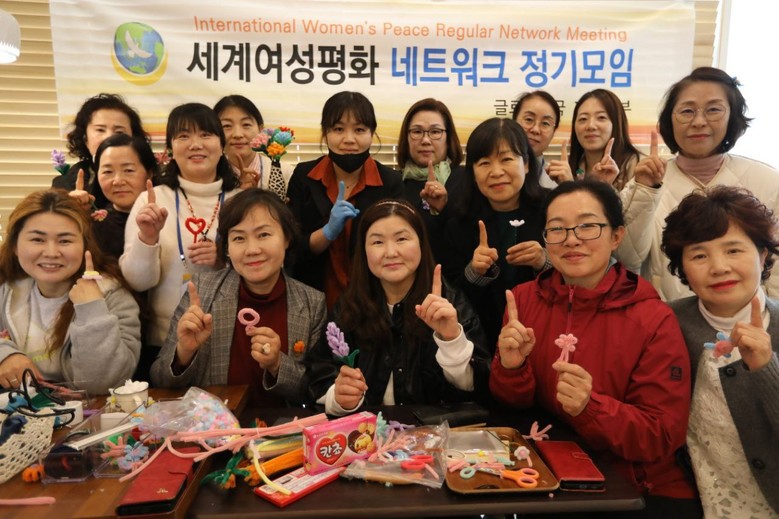 | ▲‘세계여성평화 네트워크 정기모임’ 참석자들이 모루꽃 인형을 만들고 있다. |