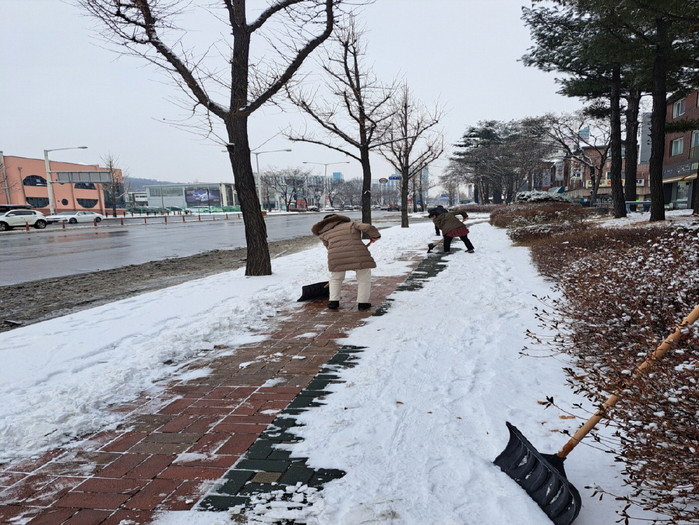 특히 제설차가 다니지 못하는 좁은 골목길 및 육교 등 제설 사각지대를 중심으로 미끄럼방지를 위한 염화칼슘 살포 등 제설작업에 총력을 기울였다.