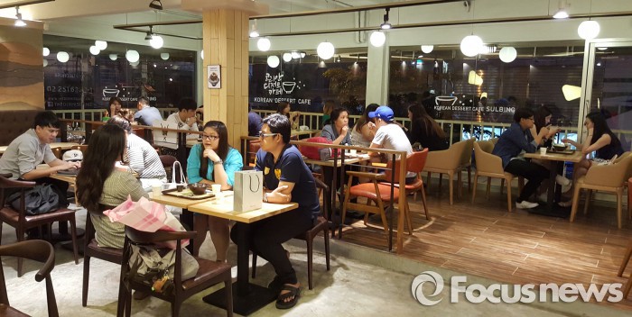 | △ 이달 28일 오픈한 설빙 태국 1호점에서 태국 소비자들이 설빙의 메뉴를 즐기고 있다. <사진제공=설빙> |