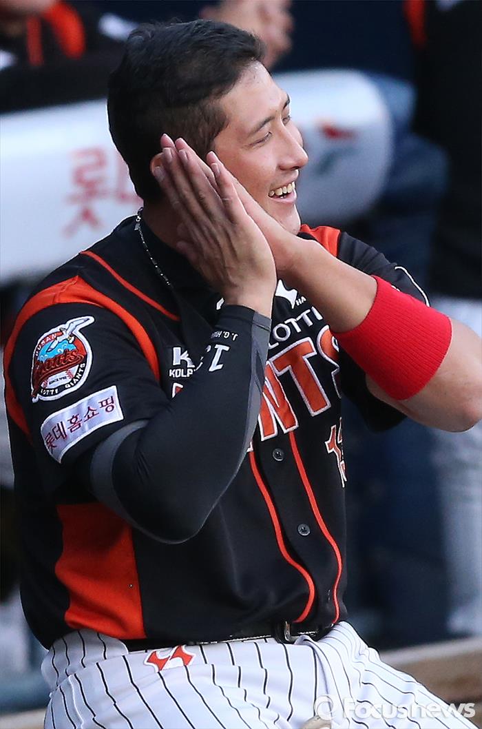| △ 지난 9월17일 잠실구장에서 열린 2015 프로야구 롯데-두산 경기,롯데 황재균이 장난을 치고 있다. <사진제공=포커스뉴스> |