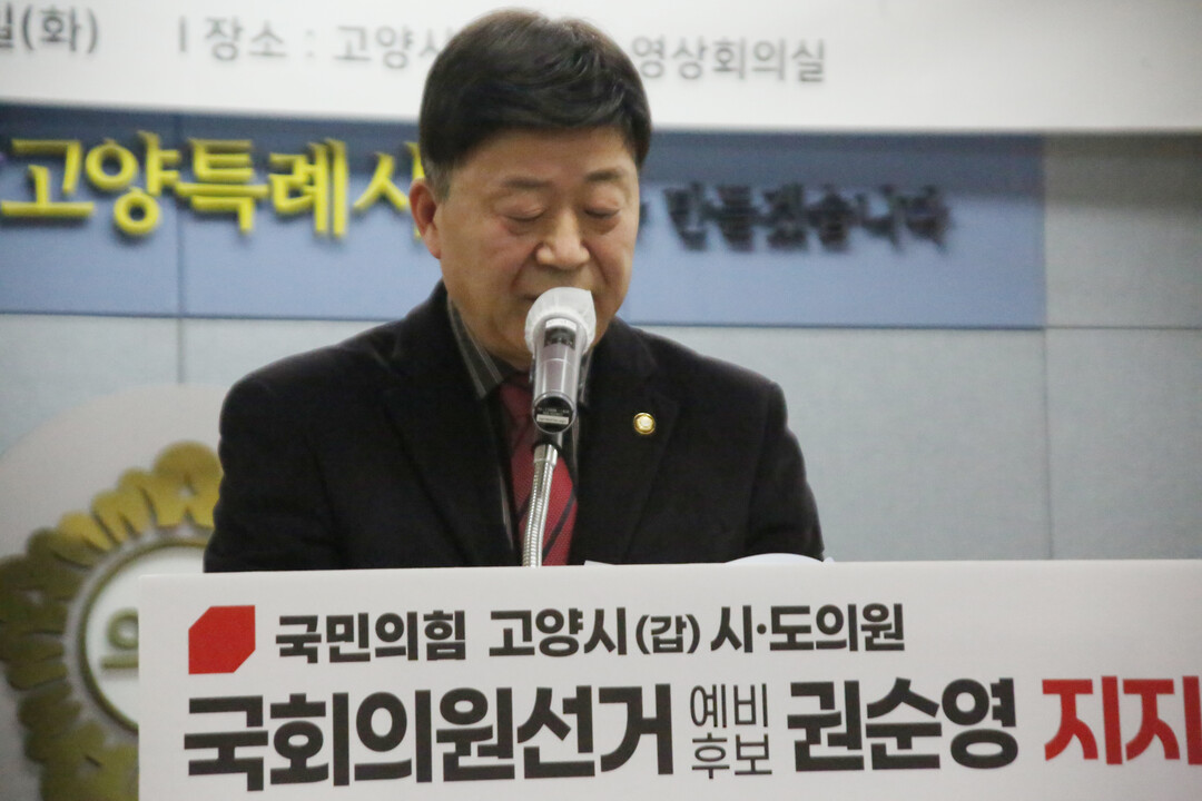 고양특례시 국민의힘 고양시(갑) 시도의원은 깨끗한 후보, 그동안 지역기반과 조직강화, 당무 감사 시 모범적인 활동을 한 (전)권순영 위원장에 대한 지지선언을 밝혔다.