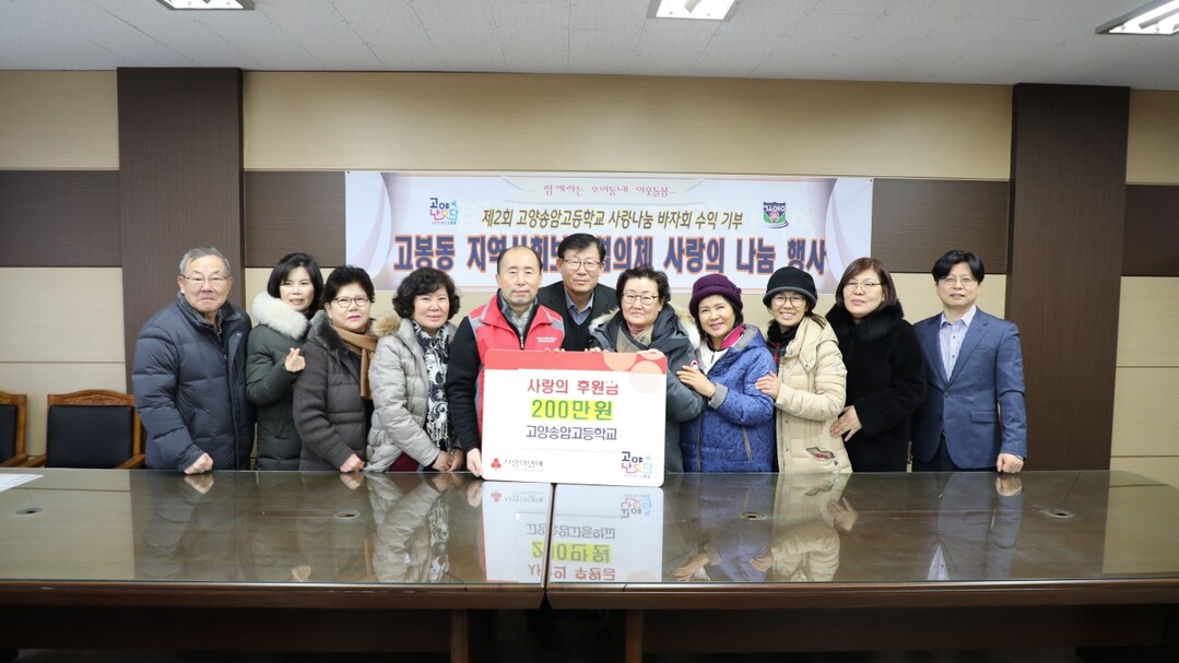 [부자동네타임즈 = 김인수 기자] 고양특례시 고봉동 지역사회보장협의체는 지난 12월 19일 고양송암고등학교와 기부금 전달식을 개최했다. 송암고는 복지사각지대 위기가구를 지원하기 위해 바자회 수익금 200만원을 기탁했다.