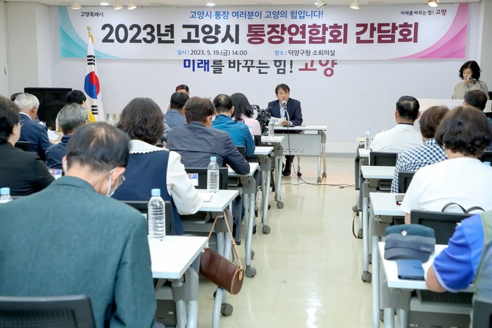 [부자동네타임즈 김인수기자] 지난 5월 19일 덕양구청 소회의실에서 ‘2023년 고양시 통장연합회 간담회’를 개최하였다.
