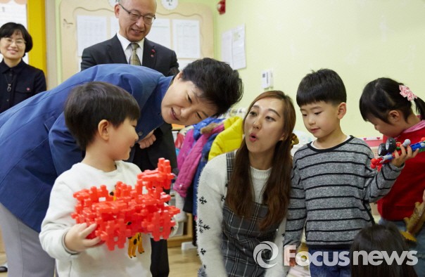 △ 박근혜 대통령은 11일 사회보장위원회를 주재했다. 사진은 2015년 초 인천의 한 어린이 집을 방문한 박 대통령 모습. <사진제공=포커스뉴스> |