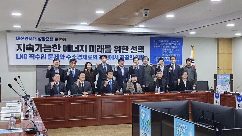 대전환시대 성장포럼(대표의원 박찬대, 연구책임의원 박희승, 정진욱)은 11월 29일 오전 10시 국회의원회관 제8간담회의실에서 LNG 직수입 제도에 따른 문제점 해결방안과 수소 경제로의 전환을 위한 공공의 역할을 중심으로 열띤 토론이 진행됐다고 29일 밝혔다.