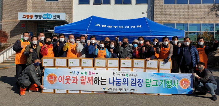 [부자동네타임즈 김인수기자] 고양시 일산동구 고봉동 행정복지센터(동장 김성구)는 지난 12일 주민자치회 등 직능단체가 참여하는 “이웃과 함께하는 나눔의 김장 담그기” 행사를 진행했다.