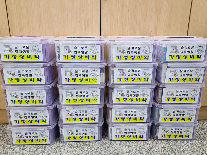 ‘슬기로운 집콕생활’사업은 독거노인 취약계층에게 필수적으로 필요한 종합감기약, 항염증제, 기침감기약, 코감기약, 소화제, 상처연고, 바르는 파스 등 가정상비약 7종 및 스트레칭밴드가 담긴 건강나눔박스를 전달하는 사업이다. 동시에 안부 확인과 치매선별검사를 원하시는 어르신이 계시면 치매안심센터와 함께 방문하여 방문검사서비스도 시행한다.