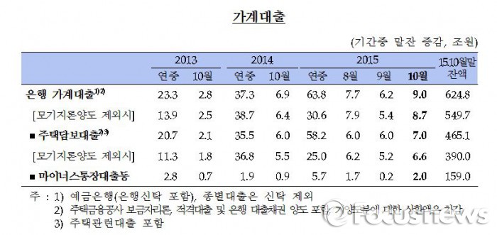 주택담보대출(모기지론양도 포함)은 이사철 주택거래 수요와 아파트 분양 호조 등으로 7조원 증가해 9월(6조원)보다 증가액이 확대됐다.