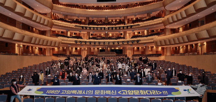 [부자동네타임즈 김인수기자] 고양문화재단(이사장 이재준)이 고양 특례시 지정을 맞아 새롭게 확대·개편한 고양시 문화예술진흥 통합 공모지원사업인 2021년 고양문화다리의 최종 프로젝트 선정식이 4월 17일 토요일 오후 고양아람누리 아람극장에서 진행되었다. 이날 선정식은 고양문화재단 정재왈 대표이사가 현장에서 2021년 고양문화다리 최종 프로젝트에 선정된 지역예술인 100여명을 따뜻하게 맞았다. 더불어 내빈으로 고양시의회 문화복지위원회의 정봉식 위원장을 비롯한 구성의원 전원이 참석하여 최종 선정된 예술인들을 축하하였다.