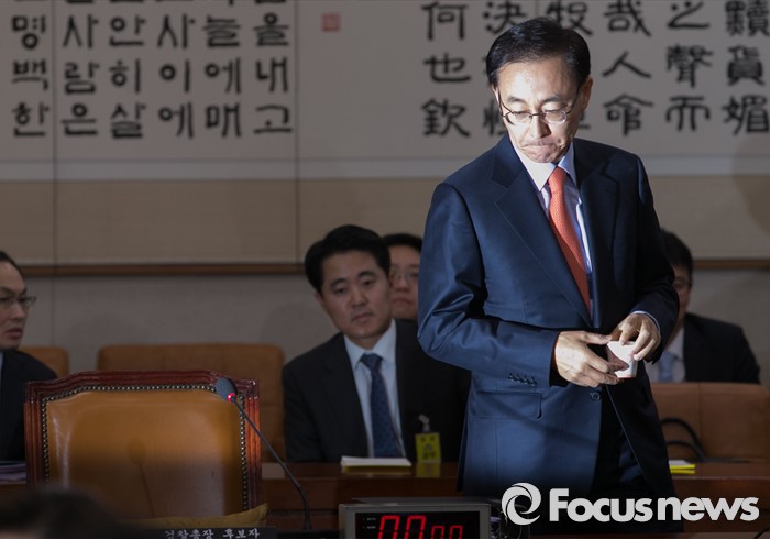 | △ 김수남 검찰총장 후보자가 19일 오전 서울 여의도 국회 법제사법위원회 회의실에서 열린 인사청문회에 참석하고 있다. <사진제공=포커스뉴스> |