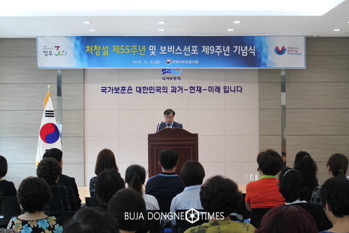 [전북=부자동네타임즈 이정술 기자] 전북서부보훈지청(지청장 이우실)은 5일(금) 청사 3층 대회의실에서 국가보훈처 창설 제55주년 및 보비스선포 제9주년을 맞아 전 직원이 참석한 가운데 기념행사를 가졌다.