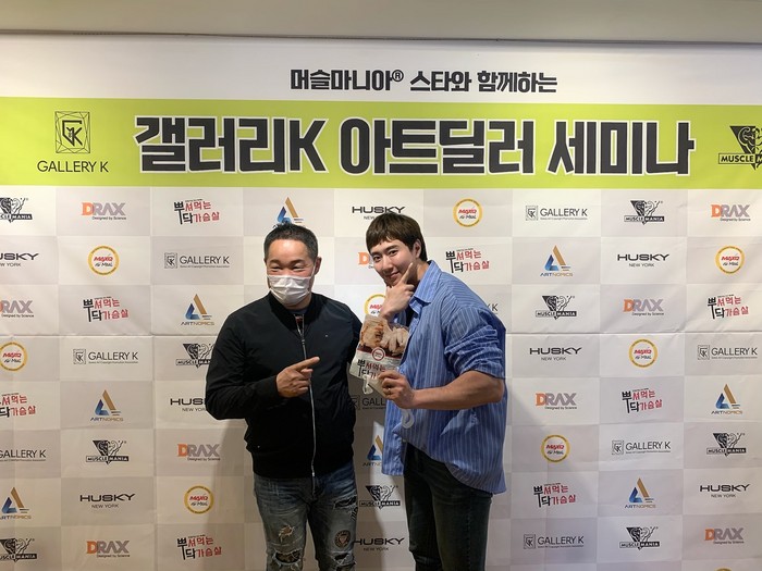 [부자동네타임즈 김인수기자] 지난 15일 서울 강남구 아트노믹스 갤러리k에서 아트딜러 세미나에 머슬매니아 대표 김근범대표와 2019년 머슬매니아 라스베가스 세계대회 30주년에 클래식피지크 세계챔피언을 차지한 김태양이 함께 나타나 시선을 끌었다.