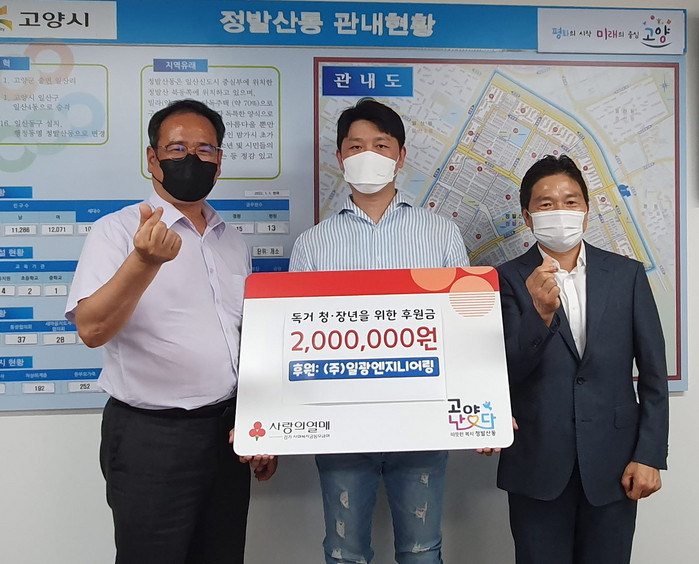 홍호조 정발산동장은 “복지사각지대 청년들을 위해 기탁해주신 ㈜일광엔지니어링에 감사드리며, 청년 고독사는 개인만의 문제가 아닌 사회적문제로 보고 지역의 기업과 공공기관이 함께 문제를 해결할 수 있도록 정발산동에서도 많은 특화사업을 실시하겠다”고 밝혔다.