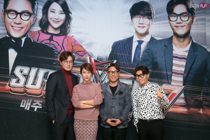 | △ Mnet 오디션 프로그램 '슈퍼스타K7'의 심사위원을 맡은 성시경, 백지영, 윤종신, 김범수가 15일 서울 상암동 CJ E&M센터에서 열린 기자간담회에서 포즈를 취하고 있다.<사진제공=CJ E&M> |