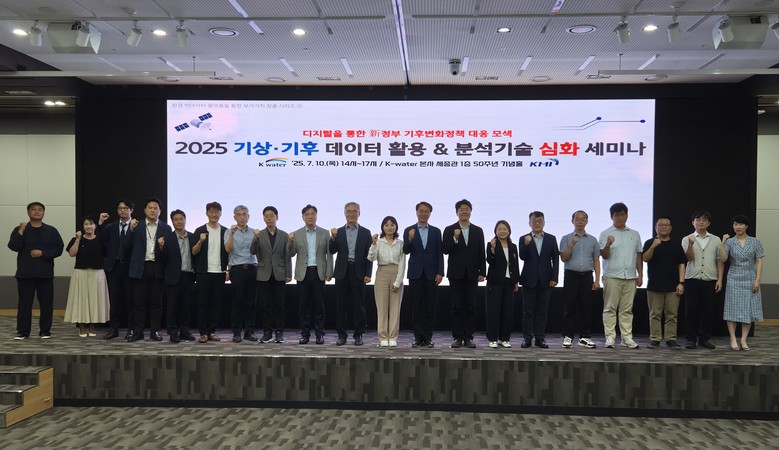 한국수자원공사(K-water, 사장 윤석대)는 7월 10일, 대전 본사에서 ‘2025 기상기후 데이터 활용 & 분석기술 심화 세미나’를 개최하고 기상 및 기후 데이터를 활용한 인공지능(AI) 분석기술과 디지털 물관리 사례를 공유했다.